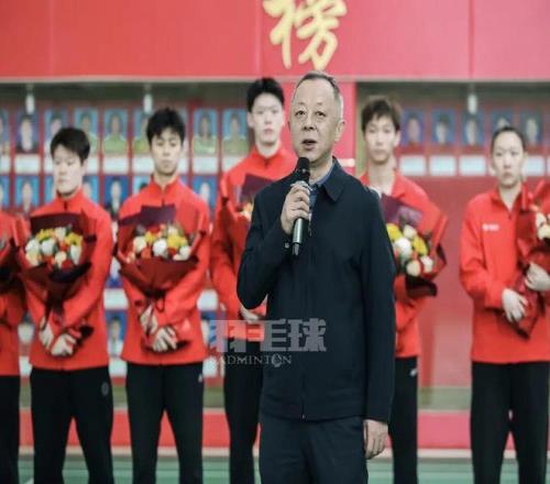 國(guó)家體育總局乒羽中心主任、黨委書記高元義在講話中表示,在這一榮耀時(shí)刻,希望全體運(yùn)動(dòng)員和教練員不忘初心,刻苦訓(xùn)練、頑強(qiáng)拼搏,在國(guó)際賽場(chǎng)上為國(guó)爭(zhēng)光。同時(shí),他勉勵(lì)大家常懷感恩之心,感恩祖國(guó)培養(yǎng)、時(shí)代機(jī)遇以及父母、教練和所有默默奉獻(xiàn)的工作人員。高元義指出,過(guò)去一年,在總局黨組的堅(jiān)強(qiáng)領(lǐng)導(dǎo)下,國(guó)家羽毛球隊(duì)在世界賽場(chǎng)屢創(chuàng)佳績(jī),這些榮譽(yù)凝聚著全體人員的共同努力。新的一年,乒羽中心黨委將繼續(xù)以高質(zhì)量黨建引領(lǐng)事業(yè)發(fā)展,全力做好服務(wù)保障工作,助力中國(guó)羽毛球隊(duì)再創(chuàng)輝煌。