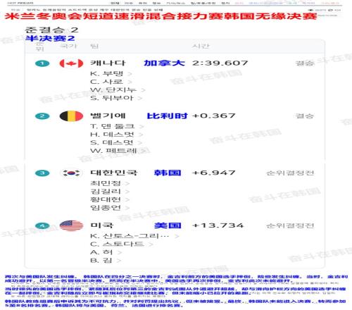 韓國網友熱議米蘭冬奧會短道速滑混合接力韓國隊因美國隊摔倒無緣決賽…
