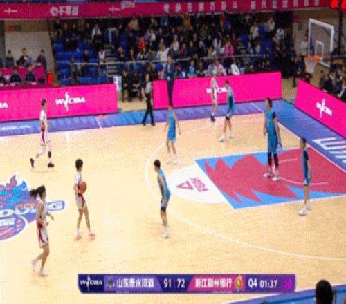 張子宇剛剛打進(jìn)籃下,鏡頭還沒切過來就被追身三分 其中比較值得關(guān)注的是面對浙江女籃的比賽,張子宇用8分鐘爆砍17分,但正負(fù)值還是-3的直接原因是浙江女籃直接玩出了一手五外站位+快攻三分的連招,基本上完美地克制了山東女籃的23聯(lián)防——在這8分鐘里她們同樣打出了三分球11中5的高效得分。