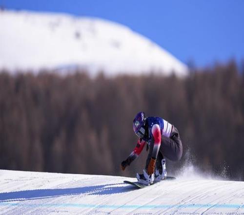 利維尼奧的雪道在陽光下泛著冷光,雪面被一趟趟滑行刻出清晰的軌跡。這座山谷小鎮(zhèn)的兩側(cè),阿爾卑斯山脈輪廓分明。 13日,米蘭冬奧會單板滑雪女子障礙追逐比賽在這里進行。22歲的藏族姑娘擁青拉姆滑過終點線后停住,扶了扶雪鏡,站著緩了一會兒。她沒有立刻去看成績,而是抬頭望向剛剛滑下來的那條賽道——半壁、跳臺、彎道一段段延伸向山腳。