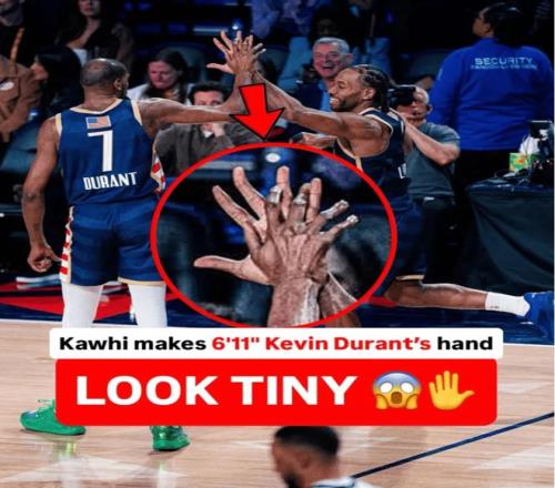 科懷-倫納德在全明星正賽是大放異彩,尤其是他與凱文-杜蘭特?fù)粽频囊粋€瞬間,他的手掌足足比杜蘭特大了一圈,根據(jù)NBA官方的數(shù)據(jù),倫納德手掌寬度28.5cm-29cm,手掌長度是24.75cm-24.8cm,杜蘭特一直以來都是聯(lián)盟知名的小手掌。