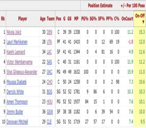 除此之外根據(jù)BXR的數(shù)據(jù),倫納德在本賽季的ON-Off(在場與離場百回合正負(fù)值的差值)11.6排在聯(lián)盟第三。 本賽季的倫納德場均32.8分鐘,拿到27.9分6.4籃板3.7助攻2.1搶斷0.5蓋帽,命中率49.1%,三分命中率38.3%。