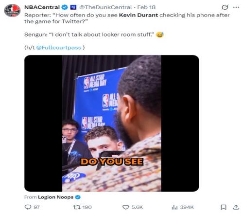 凱文-杜蘭特在全明星周末期間陷入了小號言論的風波當中,前隊友、現(xiàn)隊友、前主帥科爾都因“疑似杜蘭特小號”炮轟了一圈。北京時間2月19日杜蘭特終于發(fā)聲辟謠了。