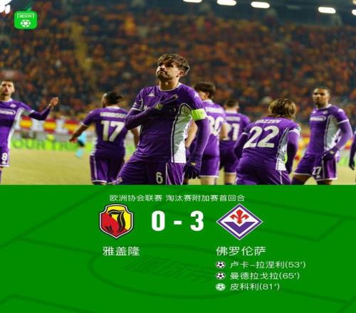 北京時(shí)間2月20日歐洲協(xié)會(huì)聯(lián)賽 淘汰賽附加賽首回合,雅蓋隆對(duì)陣佛羅倫薩。下半場(chǎng)盧卡-拉涅利破門首開紀(jì)錄,隨后曼德拉戈拉任意球破門,皮科利造點(diǎn)親自主罰打進(jìn)再下一城。最終比分雅蓋隆 0-3 佛羅倫薩。