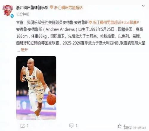 值得一提的是,在與約克解約后,浙江稠州金租男籃同時(shí)宣布,俱樂部已正式簽約美籍后衛(wèi)安德魯·安德魯斯,這位32歲老將,將代表浙江男籃出戰(zhàn)2025-2026賽季剩余比賽。作為一名雙能衛(wèi),安德魯斯在效力澳大利亞NBL期間,場(chǎng)均貢獻(xiàn)14.5分、2.4個(gè)籃板和5.8次助攻,其助攻數(shù)高居聯(lián)盟第五位。從打法和個(gè)人特點(diǎn)來看,安德魯斯既具備良好的人球結(jié)合突破能力,也有很強(qiáng)的得分能力,同時(shí)擁又具備組織串聯(lián)能力。屬于能突能投能傳的全能型小外援。