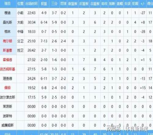 凱爾特人隊(duì)這邊,球員表現(xiàn)參差不齊。追夢(mèng)格林的表現(xiàn)著實(shí)令人大跌眼鏡,他的運(yùn)動(dòng)戰(zhàn)7次出手全部偏出,并且沒有獲得任何罰球機(jī)會(huì),得分欄上零分,僅僅收獲了2個(gè)籃板和3次助攻。更糟糕的是,他的正負(fù)值低至 -28,位列全場(chǎng)最低。交易截止日已然過去,格林卻依舊狀態(tài)低迷,不禁讓人心生疑問:是他沒有全身心投入比賽,還是年滿35歲的他,競(jìng)技水平出現(xiàn)了斷崖式下滑?
