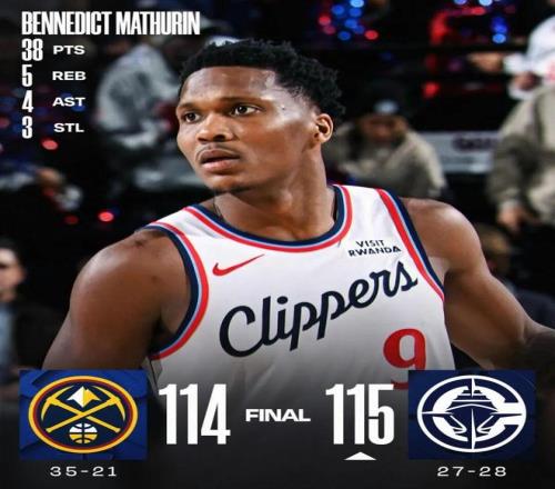 常規(guī)賽,快船115-114戰(zhàn)勝掘金。 這場比賽,快船新援馬瑟林迎來了主場首秀,然后打出了相當(dāng)炸裂的表現(xiàn):替補(bǔ)出戰(zhàn)34分鐘,投籃22中12,三分6中2,罰球13中12,得到38分5籃板4助攻3搶斷。