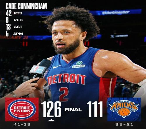 麥迪遜廣場花園徹底淪為狀元秀的秀場!活塞客場126-111輕松拿捏尼克斯,用一場酣暢淋漓的大勝,不僅坐穩(wěn)聯(lián)盟第一的寶座,還直接把尼克斯逼到了懸崖邊上,場面離譜到讓人直呼不敢信。 此役過后,活塞41勝13負高居聯(lián)盟榜首,而尼克斯35勝21負看似還穩(wěn)坐東部第三,實則戰(zhàn)績已被騎士追平,隨時可能被反超。