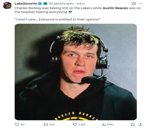 在賽后巴克利不斷地在ESPN的直播間詆毀湖人,說(shuō)湖人根本不是奪冠球隊(duì)。里夫斯則在直播間回應(yīng):我根本不在乎別人的看法,每個(gè)人都有發(fā)表自己想法的機(jī)會(huì)。