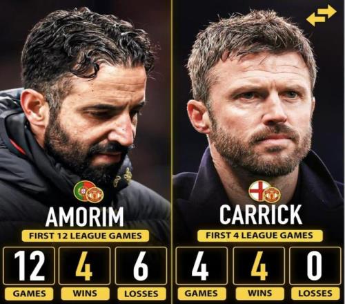 先看兩組數(shù)據(jù): 阿莫林 vs 卡里克(聯(lián)賽開(kāi)局對(duì)比) 阿莫林 | Ruben Amorim 俱樂(lè)部:曼聯(lián) 聯(lián)賽前12場(chǎng):12場(chǎng) 勝:4場(chǎng) 平:2場(chǎng) 負(fù):6場(chǎng)