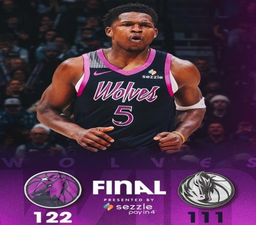 愛德華茲瘋狂出手30次命中16球,三分13中5,拿到40分6籃板1助攻1搶斷,他幫助森林狼大勝獨(dú)行俠,此役后森林狼勝率61.8%僅比湖人少0.04%的勝率排在西部第六。