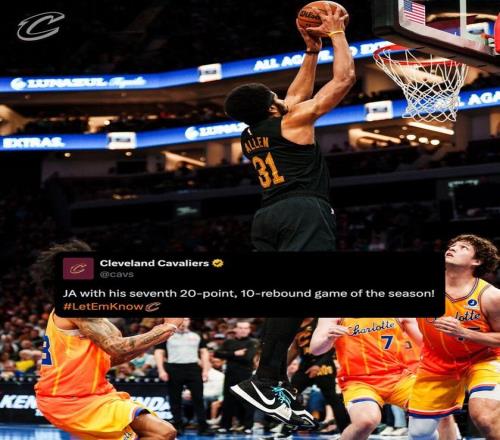 全場(chǎng)比賽,賈萊特阿倫一共出戰(zhàn)32分鐘,投籃15中11,拿下26分14籃板2助攻1蓋帽。 其中第一節(jié)剛開始,賈萊特阿倫就火力全開,他一人包攬了騎士全隊(duì)前11分里的8分,單節(jié)打完已經(jīng)拿到11分3籃板,期間順下吃餅、二次進(jìn)攻甚至還秀了一把中投; 下半場(chǎng)第三節(jié),阿倫再次挺身而出,單節(jié)拿下9分3籃板(2個(gè)進(jìn)攻籃板),這一節(jié)4個(gè)運(yùn)動(dòng)戰(zhàn)進(jìn)球,2個(gè)吃餅,2個(gè)補(bǔ)籃,三節(jié)結(jié)束,他已經(jīng)得到24分。 雖然第四節(jié)只拿到2分,但阿倫搶下了4個(gè)籃板,全場(chǎng)下來(lái),他的14個(gè)籃板里有7個(gè)是進(jìn)攻籃板,其他隊(duì)友加起來(lái)一共只有4個(gè)。