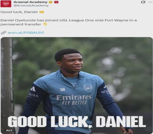 官方:阿森納宣布丹尼爾-奧耶通德轉(zhuǎn)會(huì)加盟了USL League One(美國(guó)職業(yè)足球的低級(jí)別聯(lián)賽)的Fort Wayne俱樂部。 19歲的奧耶通德在2021年10月加盟阿森納青訓(xùn),他在去年夏天簽下了職業(yè)合同,至今為止這名前鋒總共代表阿森納u18-u21出戰(zhàn)了31場(chǎng)比賽。 不太了解這個(gè)小將,希望他在美國(guó)一切順利吧! 最近確實(shí)感覺出售小妖的動(dòng)作更多了,哪怕這些人賣不上多少錢,但總比未來被免簽好,這方面確實(shí)是阿森納要加強(qiáng)的地方,最近幾年被免簽的很多年前人已經(jīng)在五大聯(lián)賽立足了。
