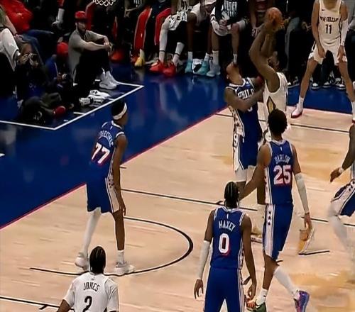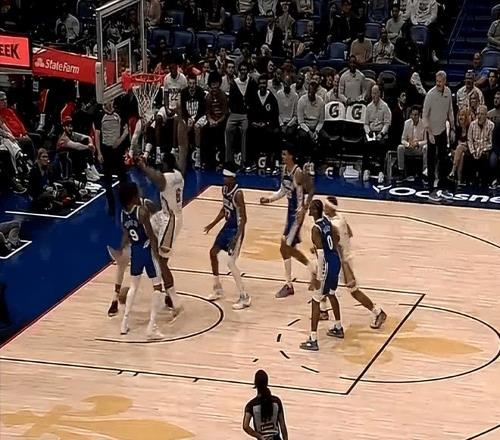 今天的比賽,開局階段莊神看到鵜鶘首發(fā)中鋒是老態(tài)龍鐘的小喬丹,表現(xiàn)很活躍,想拿捏老將,一上來就二次進(jìn)攻補(bǔ)籃得手,76人打出8-0開局。但隨后小喬丹予以回應(yīng),連續(xù)保護(hù)籃板后,送給馬克西一記排球大帽,用防守帶動(dòng)氣勢。由于有了小喬丹的籃板保護(hù),錫安和普爾今天可以放開攻擊了,兩人狀態(tài)也都很好,所以鵜鶘很快完成了反超。