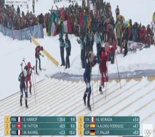 金牌得主西班牙隊(duì)奧里奧爾·卡多納·科爾、銀牌得主AIN隊(duì)(俄羅斯裔)尼基塔·菲利波夫以及銅牌得主法國(guó)隊(duì)蒂博·安塞爾梅 | Olympics.com 女子短距離決賽同樣精彩。 瑞士選手瑪麗安娜?法頓(Marianne Fatton)以2分59.77秒的成績(jī)奪得女子短距離金牌,法國(guó)名將埃米莉·哈羅普(Emily Harrop)獲得銀牌。值得一提的是西班牙選手安娜?阿隆索?羅德里格斯(Ana Alonso Rodríguez)。她在比賽前騎行訓(xùn)練時(shí)遭遇車禍,導(dǎo)致左側(cè)前交叉韌帶(ACL)和內(nèi)側(cè)側(cè)韌帶(MCL)斷裂,以及踝骨裂、肩部脫臼等重傷,在冬奧會(huì)開(kāi)始前四個(gè)月,她放棄了接受手術(shù),轉(zhuǎn)而通過(guò)康復(fù)訓(xùn)練和密集理療恢復(fù)比賽狀態(tài),獲得了銅牌。 年僅19歲的中國(guó)小將次旦玉珍在預(yù)賽中名列女子第13名,僅差一名晉級(jí)半決賽。