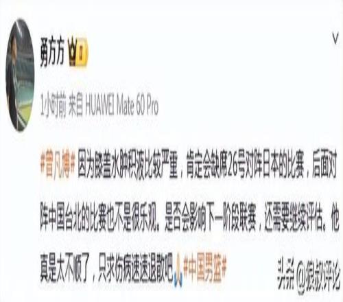 記者:曾凡博膝蓋水腫積液比較嚴(yán)重肯定會(huì)缺席26日對(duì)陣日本的比賽