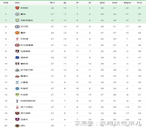 英超最新積分榜:阿森納笑傲德比5分領(lǐng)跑,利物浦讀秒絕殺仍居第6