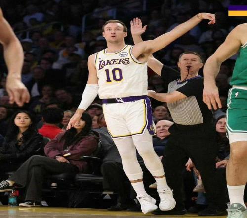 綠軍和湖人的淵源可大了,作為NBA歷史上奪冠次數(shù)最多的2次隊伍,湖人和綠軍沒少在總決賽上相遇,經(jīng)典的黃綠大戰(zhàn)也是NBA不可磨滅的色彩,而本場2隊相遇,綠軍36勝19負高居東部第2,哪怕沒有塔圖姆,他們統(tǒng)治力依舊強悍,湖人想要在他們身上取得勝利,難度相當大。 塔圖姆本場隨球隊來到洛杉磯,現(xiàn)場觀戰(zhàn)!比賽上來,2隊也是互不相讓,詹姆斯、東契奇手感不錯,內(nèi)外得分,引領(lǐng)著湖人的進攻,但綠軍多點開花,懷特、科塔、布朗給予回敬,2隊你來我往,比分始終緊咬!東契奇,里夫斯聯(lián)手為湖人占據(jù)主動,但普里查德上來不可阻擋,首節(jié)2隊打成28平。次節(jié)湖人替補登場,他們的進攻命中率大幅下滑,連續(xù)進攻打鐵,綠軍雖然整體表現(xiàn)不佳,可普里查德手感火熱,隨后布朗上來也是不斷發(fā)力,綠軍打出進攻高潮,一舉拉開了雙方的差距,半場打完,綠軍建立了10分領(lǐng)先。