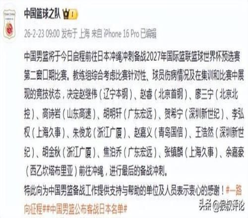 球迷熱議中國男籃14人出征名單官方評論區(qū)被沖爆高詩巖頻繁被點名