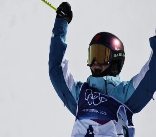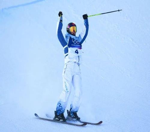 當?shù)貢r間2月22日,在意大利利維尼奧舉行的米蘭-科爾蒂納冬奧會自由式滑雪女子U型場地技巧決賽中,中國選手谷愛凌、李方慧包攬冠亞軍。 ↑谷愛凌在等分區(qū)慶祝。