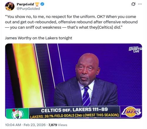作為解說(shuō)嘉賓的湖人名宿沃西更是一針見(jiàn)血的指出:“你們沒(méi)有表現(xiàn)出對(duì)紫金軍團(tuán)球衣的尊重,一次又一次被對(duì)手搶下前場(chǎng)籃板,這讓他們嗅到了你們的弱點(diǎn)?!?/p> “作為一名球員,當(dāng)你意識(shí)到自己即將落敗時(shí),就會(huì)開(kāi)始抱怨、不停發(fā)牢騷,然后把目光投向裁判,就是這樣。”