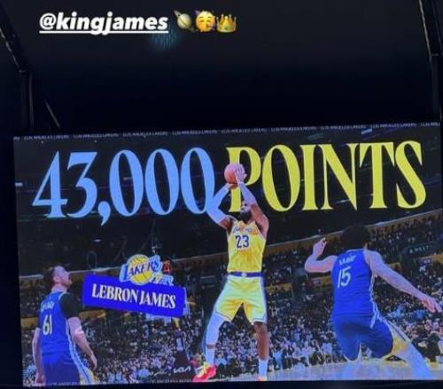 2月23日,湖人球星勒布朗-詹姆斯達成職業(yè)生涯43000分里程碑。賽后他也轉(zhuǎn)發(fā)了自己得到43000分的海報,并配文:“繼續(xù)前進?!?/p>