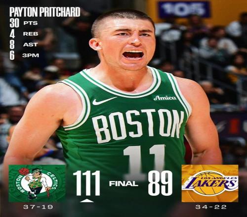 凱爾特人客場111-89血洗湖人!普里查德38分鐘轟30分8助,三分9中6,這效率比你搶到限量球鞋還上頭。對普里查德來說,這已是生涯第10次30+,其中5次在本賽季——上賽季最佳第六人,年薪才670萬,現(xiàn)在直接起飛!賽季初對騎士狂砍42分,這場對湖人又30分,三分6中6,罰球4中4,簡直把湖人防得懷疑人生。