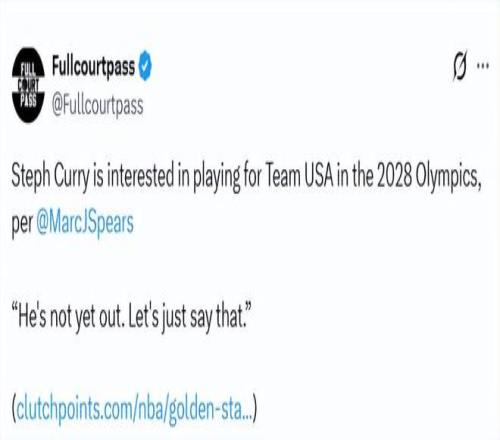 北京時(shí)間2月24日,據(jù)NBA名記Spears在節(jié)目上報(bào)道,庫(kù)里仍有興趣代表美國(guó)男籃出戰(zhàn)2028年洛杉磯奧運(yùn)會(huì)。