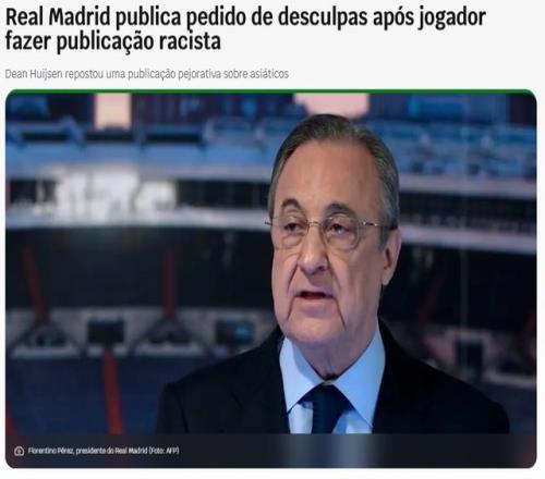 皇馬球員赫伊森,在自己520萬(wàn)粉絲的INS賬號(hào)上轉(zhuǎn)發(fā)有種族歧視意味的圖片,他被迫在中國(guó)社交平臺(tái)上(微博)道歉。 葡萄牙《球報(bào)》: