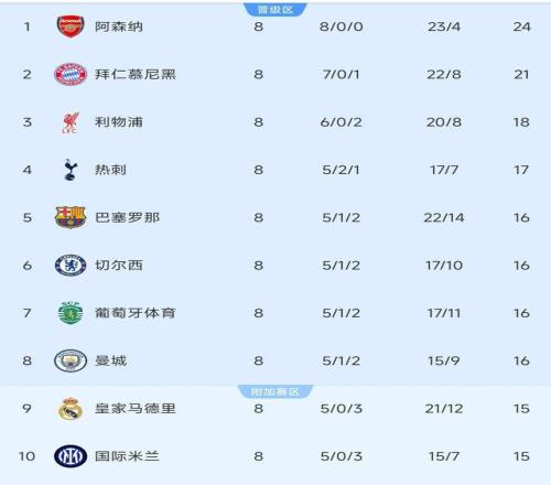北京時間2026年2月25日消息。歐冠聯(lián)賽在上賽季開始進行改制。從原本的32強變成36強+聯(lián)賽制,即36支球隊先打聯(lián)賽階段,第1到第8名直接晉級16強。第9到第24名打附加賽,再決出剩余8個球隊,第25名到第36名直接出局。