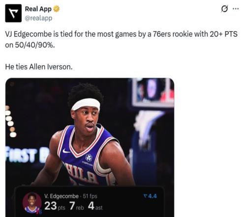 同時(shí)埃奇庫(kù)姆的效率要更加出色,本場(chǎng)已經(jīng)是其新秀賽季第3次以180俱樂(lè)部命中率(50/40/90)砍20+,成功追平艾弗森并列76人隊(duì)史第一。 無(wú)論是大當(dāng)家馬克西的持續(xù)暴走,還是恩比德的夢(mèng)回巔峰,乃至新科探花埃奇庫(kù)姆的神奇發(fā)揮,都讓這支76人隊(duì)擁有超高的上限。 如果能夠在季后賽中全員恢復(fù)健康,那么這支賽季初不被外界看好的76人隊(duì),極有可能在季后賽期間成為東部最大黑馬。