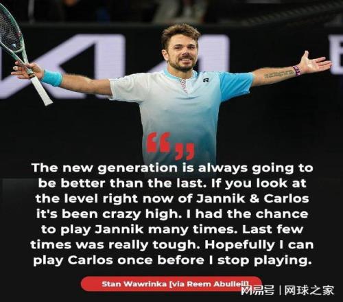 其它場次:前賽會冠軍、瑞士老將瓦林卡以7-5 6-3擊敗黎巴嫩球員哈桑,收獲開門紅。此役過后,瓦林卡還刷新了一項紀(jì)錄,這就是成為ATP歷史上年滿40歲之后,取得巡回賽勝場數(shù)最多的球員(10場)。賽后,四蛋在接受采訪時表示,希望在自己這個最后賽季里,能與世界第一阿爾卡拉斯交手,“新一代球員總是比上一代更強(qiáng)。看看現(xiàn)在揚尼克和卡洛斯的水平,簡直高得驚人。我有幸和揚尼克交手過很多次,最近幾次都非常艱難。希望在我退役之前還能和卡洛斯打一次。”