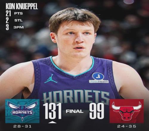 北京時間2月25日,NBA常規(guī)賽,黃蜂131-99大勝公牛。黃蜂4號秀克尼佩爾出戰(zhàn)22分31秒,投籃12中7,三分6中3,罰球4中4,砍下21分1板2助2斷,正負(fù)值+24全場第二高。克尼佩爾27次單場20+,在2025屆新秀中排第一。