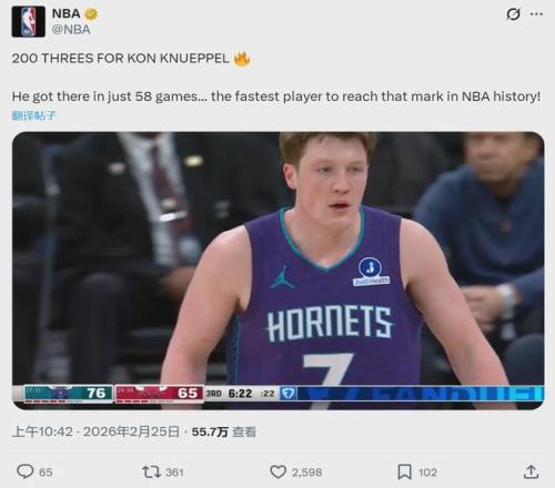 歷史第三快是基根-穆雷的77場,第四是布蘭登-米勒的79場,第五是杰倫-格林的82場。庫里和克萊都是用了99場比賽,才投進(jìn)生涯第200記三分。NBA新秀單賽季三分命中數(shù)是206記,由基根-穆雷創(chuàng)造,克尼佩爾只差6球就能超越!