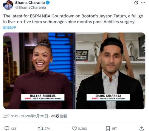 塔圖姆要回來(lái)了。 名記Shams在節(jié)目中透露,凱爾特人球星已經(jīng)全程參與5對(duì)5對(duì)抗訓(xùn)練,球隊(duì)將在3月份幫他達(dá)到最佳狀態(tài)。至于具體哪一場(chǎng)復(fù)出,綠軍尊重他本人的意愿。