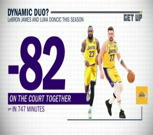 ESPN專家麥克馬洪在節(jié)目上說道:“你回看那個瞬間,會發(fā)現(xiàn)東契奇明顯缺乏自信。你可以批評東契奇很多點(diǎn),但缺乏自信極少是其中之一。我上一次見他這么猶豫,還是獨(dú)行俠剛換來歐文的時候,他過于謙讓。顯然他們后來磨合好了,成了關(guān)鍵絕殺組合,還打進(jìn)了總決賽?!?/p> 第二項(xiàng)數(shù)據(jù)就是東契奇和詹姆斯本賽季同場的747分鐘,湖人輸給對手82分,在全隊(duì)任何雙人組合的數(shù)據(jù)里,這是最差的。