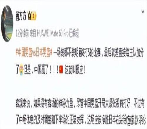 客觀來說,如果沒有客場的神秘力量,盡管中國男籃開局太緊張沒有打好,不過有了中場休息的及時(shí)調(diào)整和下半場的正常發(fā)揮,這場應(yīng)該凈勝日本在20分左右。