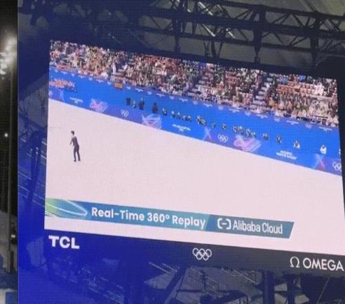 空間被凍結(jié),時間被拉長,視角可以自由移動……以往難以被肉眼捕捉,尤其是在現(xiàn)場觀眾們可能會看不清、記不住的運動軌跡,就這樣以三維的方式展開。 屏幕下方,藍色圍欄映著奧林匹克五環(huán)標志,就是本次冬奧會的正式比賽場地。持票觀眾站在現(xiàn)場,不僅能像以前一樣觀看比賽,還能在賽前動作本身的結(jié)構(gòu)與力量之美。 這樣的畫面,來自阿里云的“360°實時回放技術(shù)”Real-Time 360°Replay,它正在給本屆冬奧會帶來積極的改變。 米蘭冬奧會女子空中技巧決賽 徐夢桃比賽現(xiàn)場 不同于傳統(tǒng)意義上的慢鏡頭回放,作為對運動瞬間的實時重構(gòu),360°實時回放技術(shù)通過多機位相機矩陣采集賽場畫面,在幀同步與視頻預處理之后,將信號上傳至云端,由AI完成三維建模、空間補全與實時渲染,生成可被自由環(huán)繞觀看的多視角影像,以往那些無法被完整捕捉的角度得以重建。 最終,對現(xiàn)場觀眾而言,那些稍縱即逝的騰空、轉(zhuǎn)體與落地瞬間,被重新展開。動作得以拆解,軌跡被清晰呈現(xiàn),肉眼難辨的細節(jié),在屏幕中獲得了新的時間尺度與空間維度。 被重新定義的回放360°實時回放技術(shù)出現(xiàn)和進化的背后,是奧運會轉(zhuǎn)播體系的結(jié)構(gòu)性變化。 奧林匹克廣播服務公司(OBS)首席執(zhí)行官伊阿尼斯·??怂_科斯在公開交流中多次提到,奧運會轉(zhuǎn)播體系在數(shù)字化、云技術(shù)支持下,正在不斷加大內(nèi)容生產(chǎn)與分發(fā)力度,使得覆蓋形態(tài)和內(nèi)容規(guī)模遠超過去僅依賴傳統(tǒng)電視的時代。比賽信號之外,大量衍生視角、多版本制作、平臺定制內(nèi)容不斷增加,已向OBS推送上萬條制作內(nèi)容,轉(zhuǎn)播已從對賽事的記錄轉(zhuǎn)向?qū)?nèi)容的供給。