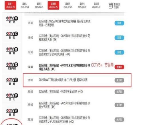 原定于CCTV5播出的WTT新加坡大滿貫系列賽事,包括王曼昱VS申裕斌這一焦點(diǎn)戰(zhàn),整體遷移至CCTV5+頻道同步直播,畫面質(zhì)量、解說陣容與互動體驗(yàn)全面對標(biāo)主頻道。 此次頻道分配邏輯清晰明確,并非厚此薄彼,而是基于賽事屬性與戰(zhàn)略權(quán)重科學(xué)統(tǒng)籌。