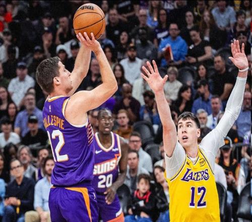 第三節(jié),湖人將比賽的節(jié)奏打得更快,他們很快領(lǐng)先太陽(yáng)兩位數(shù),格雷森·阿倫連中三分,太陽(yáng)轟出10-0追到2分打停湖人。雙方單節(jié)再次戰(zhàn)平,他們戰(zhàn)成80平進(jìn)入到末節(jié)。