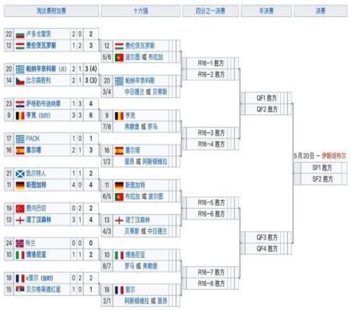 歐協(xié)杯晉級(jí)路線圖 歐聯(lián)杯16強(qiáng)球隊(duì)如下,具體組成為:英格蘭2隊(duì)、意大利2隊(duì)、西班牙2隊(duì)、德國(guó)2隊(duì)、法國(guó)2隊(duì)、葡萄牙2隊(duì),丹麥、比利時(shí)、匈牙利和希臘各1隊(duì)。 【歐聯(lián)杯聯(lián)賽階段直通8隊(duì)】 阿斯頓維拉(英超)、羅馬(意甲)、皇家貝蒂斯(西甲)、弗賴堡(德甲)、里昂(法甲)、波爾圖(葡超)、布拉加(葡超)、中日德蘭(丹超) 【歐聯(lián)杯淘汰賽附加賽晉級(jí)8隊(duì)】 諾丁漢森林(英超)、博洛尼亞(意甲)、斯圖加特(德甲)、塞爾塔(西甲)、里爾(法甲)、費(fèi)倫茨城(匈甲)、帕納辛納科斯(希臘超)、亨克(比利時(shí)甲) 【歐聯(lián)杯1/8決賽潛在對(duì)陣】 費(fèi)倫茨城/斯圖加特vs波爾圖/布拉加 帕納辛納科斯/諾丁漢森林vs中日德蘭/皇家貝蒂斯 亨克/博洛尼亞vs羅馬/弗賴堡 維戈塞爾塔/里爾vs阿斯頓維拉/里昂