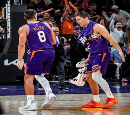 第二節(jié)湖人命中率下降,太陽隊方面則是多點開花,內(nèi)突外投打出了一波18-4的攻擊波,43-33取得了10分的領(lǐng)先優(yōu)勢。后半段湖人在東契奇和里夫斯的帶領(lǐng)下,回敬了太陽一波14-2的攻勢。半場比賽戰(zhàn)罷,兩隊49-49不相上下。 第三節(jié)上來湖人延續(xù)了上半場末段的手感,打出了11-0的開局,60-49將分差拉開到兩位數(shù)。阿倫接連三分命中,太陽一波10-0后在3分14秒追到68-70。此后雙方在場上陷入僵持,三節(jié)結(jié)束兩隊80-80戰(zhàn)成平局。 末節(jié)前半段湖人隊進(jìn)攻啞火,太陽隊趁機(jī)打出了一波18-3的攻擊波,101-89太陽將領(lǐng)先優(yōu)勢擴(kuò)大到12分。關(guān)鍵時刻東契奇靠自己的2+1和兩記三分,幫助湖人追到101-103。最后1分鐘里夫斯三分命中,108-108湖人追平比分。奧尼爾三分出手命中,太陽113-110留給湖人0.9秒時間。里夫斯錯失絕平機(jī)會,湖人遺憾輸?shù)舯荣悺?/p> |