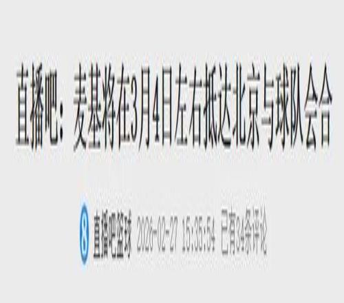 快了,終于快要等到了。 國(guó)內(nèi)知名籃球平臺(tái)報(bào)道:預(yù)計(jì)3月4日左右,麥基就會(huì)來(lái)華與北京隊(duì)會(huì)合。