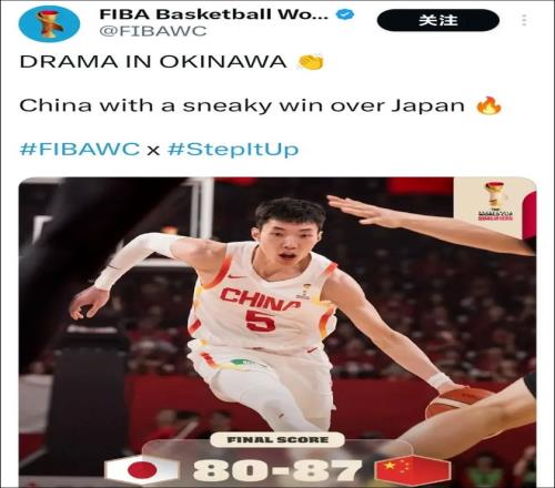 賽后,F(xiàn)IBA世界杯的Instagram官方賬號寫道:“沖繩神劇本!中國男籃從日本偷走一場勝利?!边@樣的描述引發(fā)了眾多網(wǎng)友的不滿。