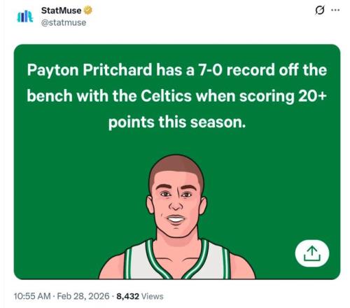 作為球隊(duì)替補(bǔ)席最重要的火力點(diǎn),他已經(jīng)成為球隊(duì)贏球風(fēng)向標(biāo),本場比賽結(jié)束后,本賽季當(dāng)普理查德至少拿下20分時(shí),凱爾特人7勝0負(fù)保持不敗金身。