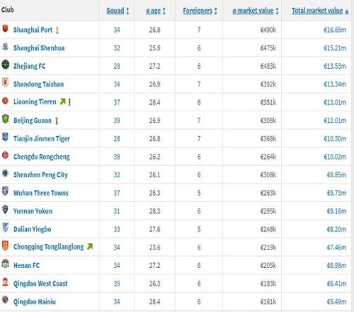 中超身價排行榜!海港暴跌仍領(lǐng)跑,鐵人第5蓉城第8,青島兩隊(duì)墊底
