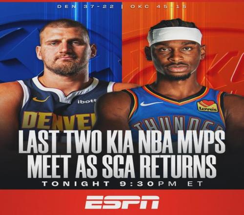 過去10場比賽,雷霆只有6勝4負(fù),掘金更慘:4勝6負(fù)。截至今天賽前,掘金37勝22負(fù)跌至西部第四,僅領(lǐng)先第五的森林狼0.5個勝場。兩隊(duì)都有主力缺陣:雷霆的杰倫-威廉姆斯、掘金的隆-戈登和沃特森,這三個人都遭遇了腿筋拉傷。