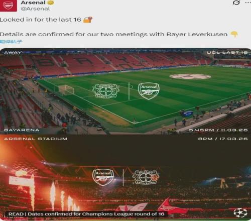官方:阿森納將在歐冠八分之一決賽中對(duì)陣?yán)瘴謳?kù)森。 兩回合比賽阿森納先客后主,槍手將在3月11日周三前往德國(guó)踢首回合比賽,然后球隊(duì)回到主場(chǎng),在3月17日周二對(duì)陣藥廠(都是當(dāng)?shù)貢r(shí)間)。 鑒于此,阿森納對(duì)埃弗頓的英超比賽改期,從原來(lái)的3月15日調(diào)整到了3月14日周六。 非常好的簽運(yùn),不是說(shuō)單單抽到勒沃庫(kù)森而言,而是落入到了下半?yún)^(qū)。如果能進(jìn)8強(qiáng),對(duì)手是博德閃耀或者葡萄牙體育,當(dāng)然歐冠無(wú)弱旅,但看看其他對(duì)手,這已經(jīng)算是最好的安排了。 曼城抽到了皇馬,即便晉級(jí)可能也要踢拜仁,而且那個(gè)半?yún)^(qū)還有巴黎、切爾西、利物浦…… 今年對(duì)阿森納來(lái)說(shuō)真可謂一切都是最好的安排了,甚至傷員也基本上全部回歸了,除了梅里諾。