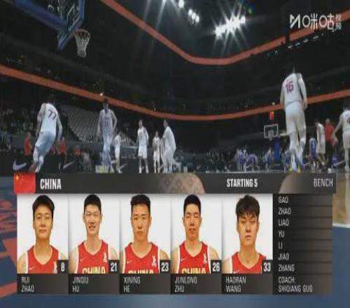 中國男籃對戰(zhàn)中國臺北隊首發(fā)不變,即趙睿+賀希寧+朱俊龍+王浩然+胡金秋。
