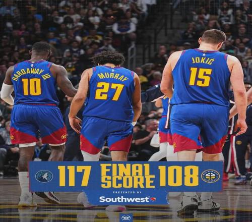 西部前四的卡位戰(zhàn),掘金掉隊了。 今天他們108-117不敵森林狼,遭遇兩連敗,下滑至西部第五。